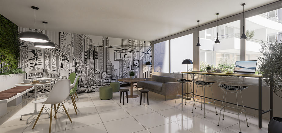 - - Edificio de 12 pisos, 1 y 2 dormitorios.